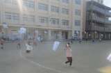 墨江小学校の広い校庭をお借りして、凧あげをしました。 「見て、見て!」後ろを振...