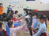 お別れ会では思い出の「にじのむこうに」を一緒に歌ったり、プレゼントを贈り合った...