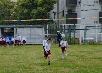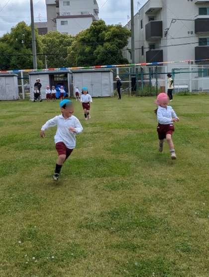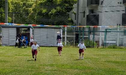 今日は長吉小学校の芝生グラウンドに行きました。朝は寒いくらいでしたが、着いたときはポカポカのいい天気!広いグラウンドで伸び伸びと体を動かして遊びました。