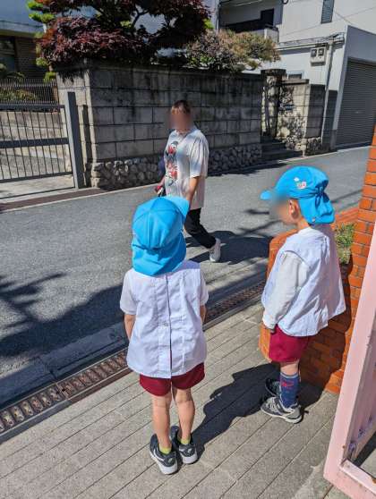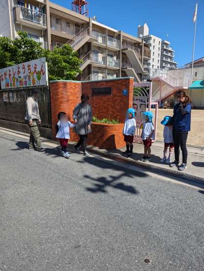 そら組のあいさつ当番がはじまりました。こどもたちは門に立って元気におはようございます!と張り切っていました。