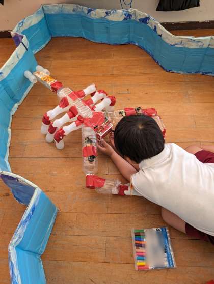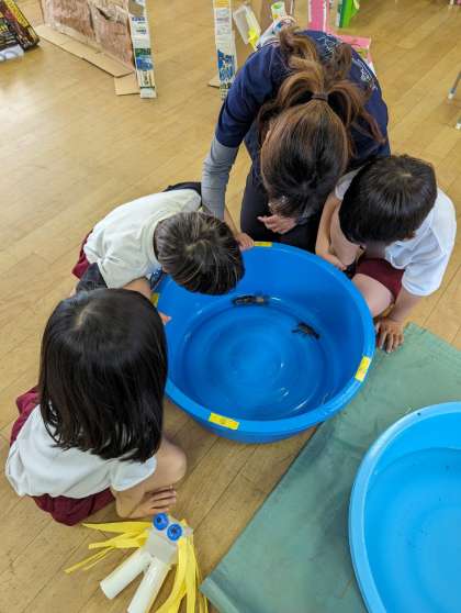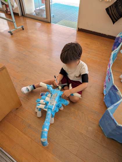 そら組さんはザリガニを作っていました。「足はどうなってるかな?」「ハサミはどんな形?」「しっぽもあるね」、、とじっくり観察して作っていました。お気に入りのかっこいいザリガニができました!