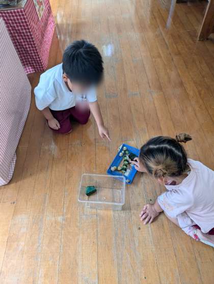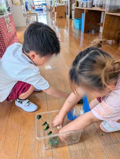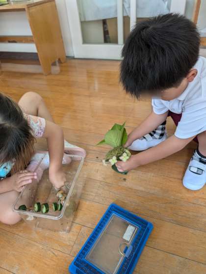 「ここまで来てる!(ふたの淵)」「葉っぱに隠れてるな」と話をしながら優しくお世話してくれました。