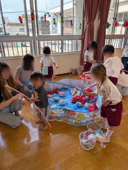 幼稚園の夏祭りでした。お家の方が準備をしてくださった色々なお店で遊びました!スーパーボールすくいや、ヨーヨー釣り、ボーリングに的あて、魚釣り、輪投げ、、、みんなとても嬉しそう!楽しい一日になりました。保護者の皆様、たくさんの用意や、お店屋さんのご協力ありがとうございました。