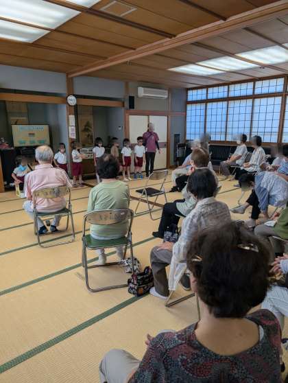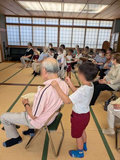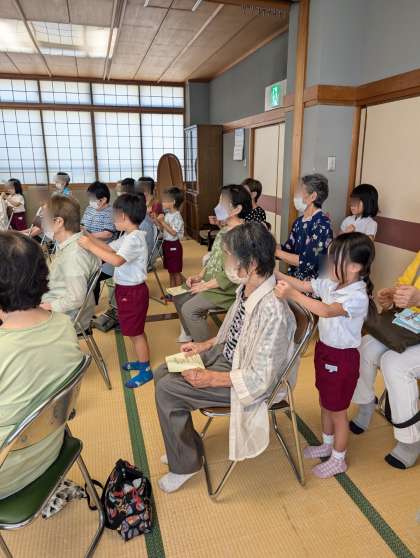 今日はそら組がいこいの家に行きました。とんぼのめがねを歌って、肩たたきの触れ合い遊びをしました。地域の方に笑顔で温かく受け止めていただき、沢山ほめていただきました。こどもたちは自信をもつことができ、地域の方への親しみの気持ちも感じることのできる経験となりました。