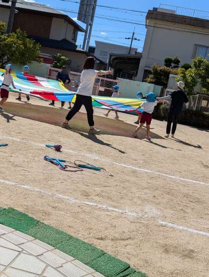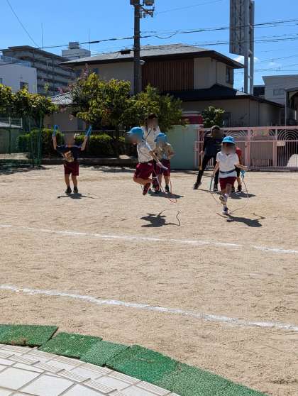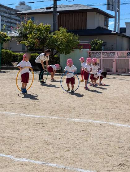 運動会にむけて頑張っています。縄やフープを使って一生懸命です。