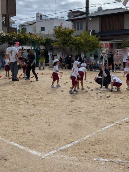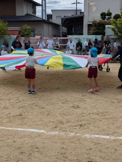 10月5日は運動会でした。前日の天気は少し心配でしたが当日は無事に晴れました!子どもたちはおやすみ0でみんな元気に参加することができました。かけっこも、パラバルーンも、玉入れも一生懸命していました。