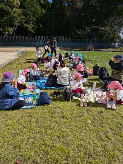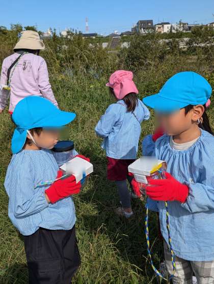 存分に虫さがしをした後は、近くの川辺小学校にお邪魔してお昼ごはんを食べました。いい天気で楽しかったですね。