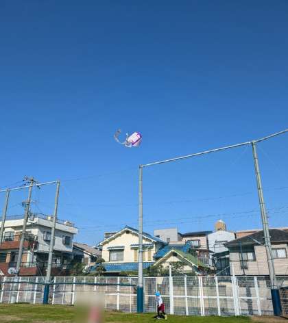 少しずつ糸をのばして、高くあげていきました。高くあがると「見てーー!!」「あがってる!!」という声もあがっていました。