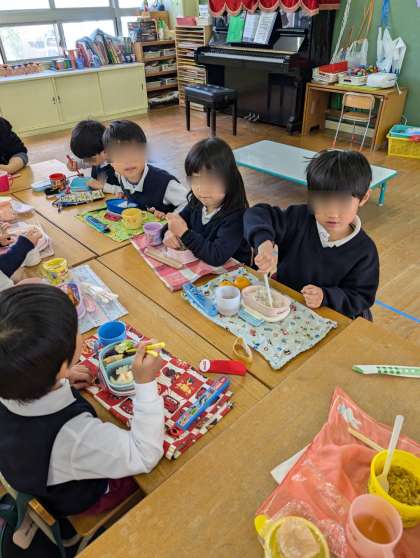 今日は2学期最後のお弁当でした。みんなで落ち着いて美味しく食べられるようになりました。明日は終業式!元気に来てくださいね。