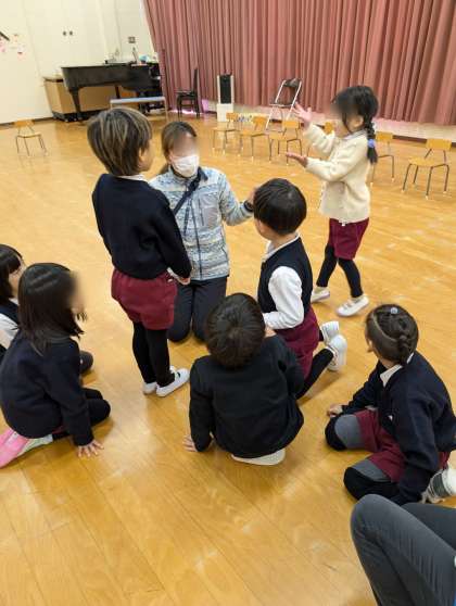 生活発表会にむけて活動を楽しんでいます。どんな風にするかを話し合ったり、お話の中でする遊びをみんなでしてみたり、お話の世界で遊んでいます。