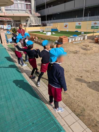 そら組さんはお部屋でおなかにいるどんな鬼を追い出すか話し合っていました。「ねぼすけ鬼」「怒りん坊鬼」「あわてん坊鬼」、、、色々なお腹の鬼を追い出して、元気に一年が過ごせますように!