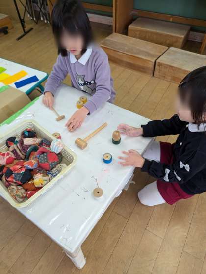 昨日、楽しかったね 公開日 2025/02/26 更新日 2025/02/26 子どもの姿 昨日、学校で教えてもらった遊びに幼稚園でもチャレンジ!繰り返し楽しんでいました。けん玉大成功!!だるま落としもどうすればうまくいくか考えていました。 いいね(0)