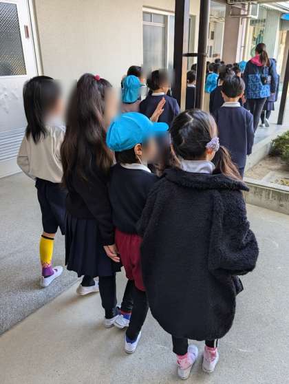 今日は長吉出戸小学校との交流でした。そら組さん、しっかり歩いていくことができました。