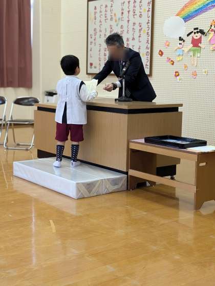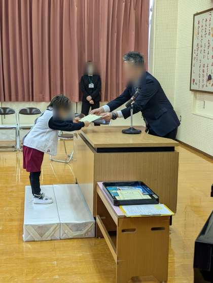 6日、「えほんふれあいノート」の表彰に平野区副区長様が来られて、1人1人に賞状を渡してくださいました。幼稚園だけではなく、お家でも、たくさんの絵本にふれて、親しめるようにしていただき、ありがとうございました。本やお話の楽しさをもっともっと感じられるようにしていきたいと思います。