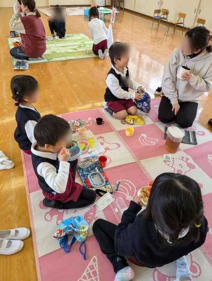 リズム室でみんなで一緒にお弁当を食べました!色々なお話をしながら食べるのも嬉しかったですね♪