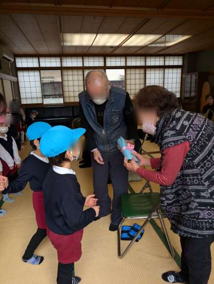 12日、今年度最後の憩いの家訪問でした。歌を聴いていただいたあとは「よろしくね」のふれあい遊びをしました。最後に1年間のお礼のお手紙をお渡ししました。はじめは緊張と、恥ずかしさで座り込んだり、後ろを向いてしまったりもしていた子どもたちですが、いつも温かく受け止めてくださったおかげで、安心感をもち自信をもって参加できるようになりました。ありがとうございました。来年度もよろしくお願いいたします。