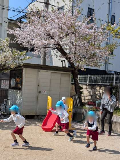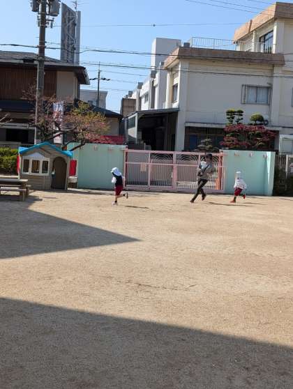 子どもたちのリクエストで、鬼ごっこ!みんな力いっぱい走っていました。