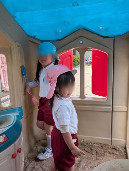 約束の後はみんなでお庭で遊びました。そら組さんがもも組さんに優しくかかわる様子も見られました。元気いっぱいたくさん遊びましょうね!
