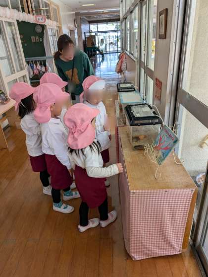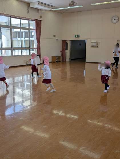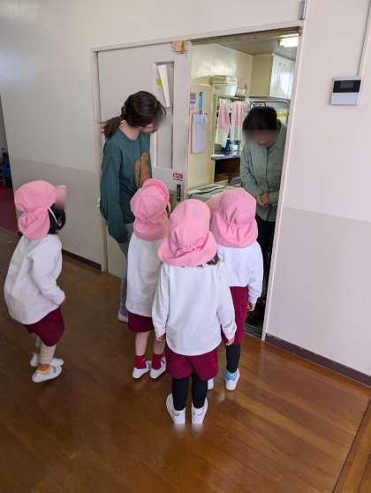 もも組さんが園内を探検していました。みんなでカタツムリやザリガニを見たり、作業員室に行ってお約束を聞いたり、広いリズム室で遊んだり、、よく見ていました。色々な場所でたくさん遊びましょうね!