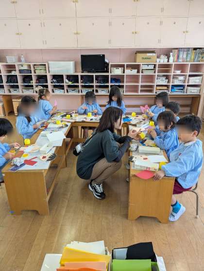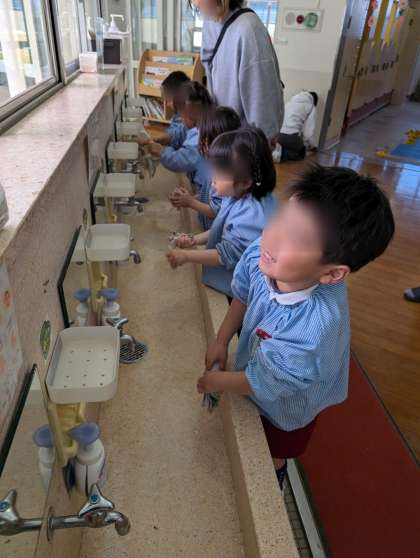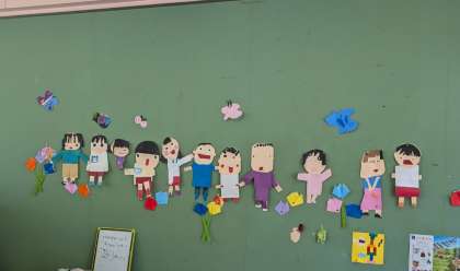 そら組さんが、自分人形を作っていました。手を拭くための、ぬれタオルも自分たちでしっかり用意して、とても丁寧に作っていました。そら組10人、、、と、、先生も作ってくれたようです。そら組さん全員集合のかわいい壁面飾りができました。