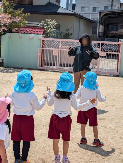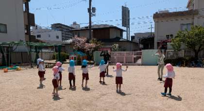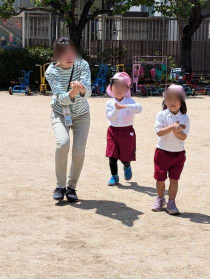 園庭に集まってみんなで体操をしています。ちょっと緊張して「見とく!」というお友達もいますが、少しずつ体が楽しく動きだすお友達が増えてきています。みんなで楽しく体操できたら嬉しいですね!