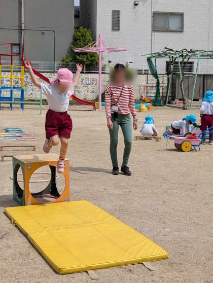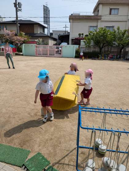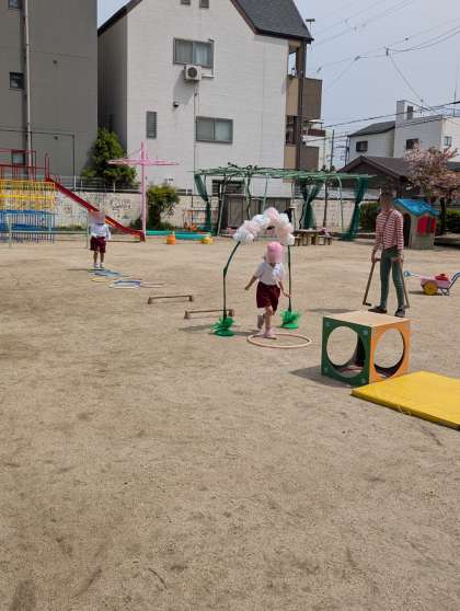お弁当のあとも、お庭でたくさん遊びました。一人ひとりが好きな遊びを見つけて、存分に遊んだり、挑戦したりしていけるようにしたいと思います。