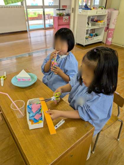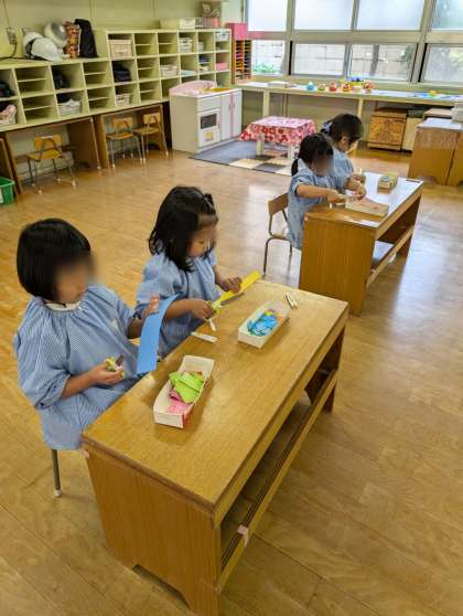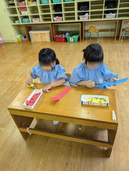 もも組さんがハサミを楽しんでいました。ハサミの約束をしてから、何枚もチョキチョキ♪