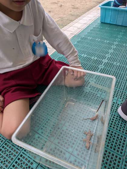 ニホンヤモリ見つけた! 公開日 2025/05/09 更新日 2025/05/09 子どもの姿 園庭でニホンヤモリを発見!1匹は赤ちゃんかな?カナヘビ、トカゲ、ヤモリ、、似てるけどよく見ると全然違うね。じっくり観察中です。 いいね(0)