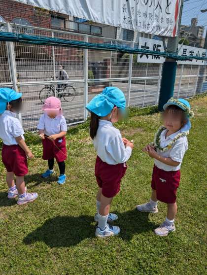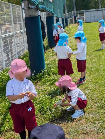 たくさん咲いていたシロツメクサを摘んだり、虫を探したりもしました。時間たっぷり、存分に楽しむ姿が見られました。