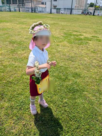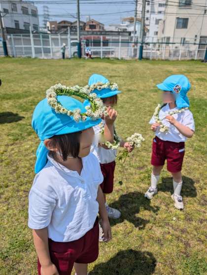 シロツメクサのかんむりや、首飾り、指輪などなど、、、いっぱいつけて似合うかな?