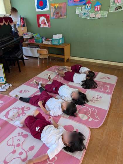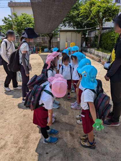 たくさん遊んで幼稚園に帰ってきました。手をつないで行ってくれたそら組さんに「ありがとうございました!」とお礼を言ってお部屋へ。