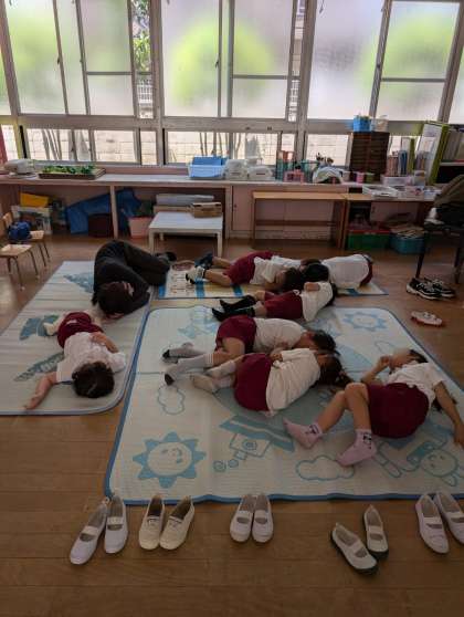 たくさん遊んだので、ござにごろーんと寝転んでちょっと休息タイムです。楽しかったね。また行きたいですね!