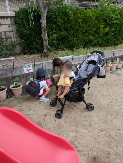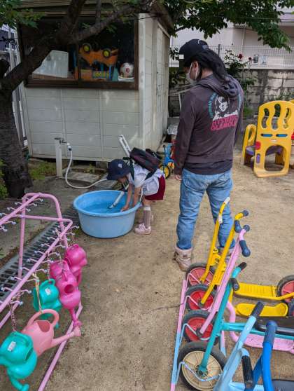 金曜日はお家の方と一緒に夏野菜の水やり。一緒に水やりをしながら野菜の観察をしたり生長を楽しみにしてお世話をしたりしてていだきたいと思っています。少しずつ大きくなってきたかな?