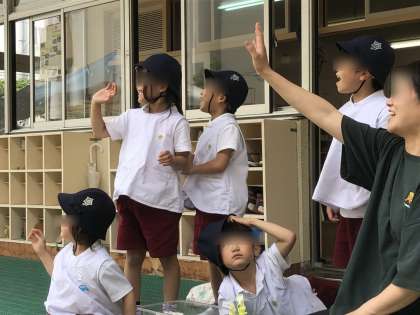 昨日のツマグロヒョウモンとバイバイしました。「またねー」「ばいばーい」とお別れしたあと、何度かひらひらと戻ってきてくれたようです。それが嬉しかったそら組さんが「また、帰ってきてん!」「ふわふわ〜て来てくれてん!」と教えにきてくれました。