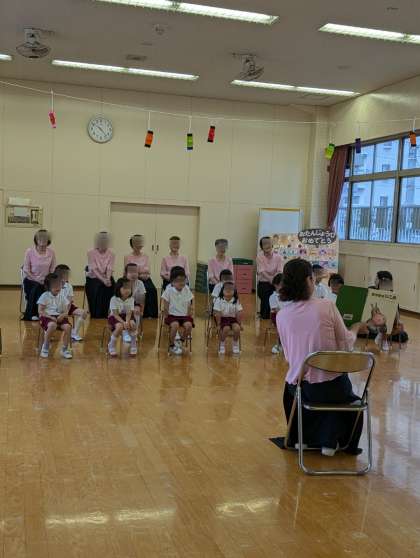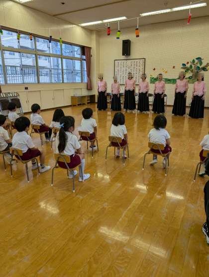 川辺コールビューティーズの方が、素敵な歌を聴かせてくださいました。落ち着いて聴いている子どもたちの姿をたくさんほめてくださいました。