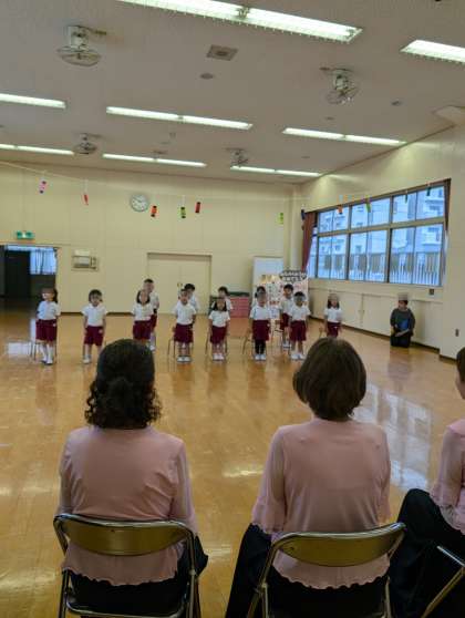 子どもたちからも今歌っている歌のプレゼント。しっかりと声を出して歌っていました。たくさん拍手していただいて嬉しかったですね。