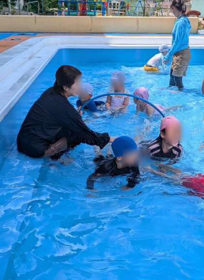 プール開き 公開日 2025/06/27 更新日 2025/06/27 子どもの姿 火曜日は雨でしたが、25日水曜日に無事にプール開きができました。いいお天気で、たくさんプールで遊べますように! お水は冷たくて気持ちがいいね。楽しそうな声が響いていました。 いいね(0)