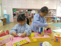 七夕の集いをしました。そら組さんがお供えを運んでくれました。お供えや笹飾りを見たり、パネルシアターで七夕のお話をきいたりしました。