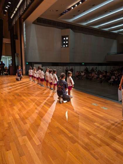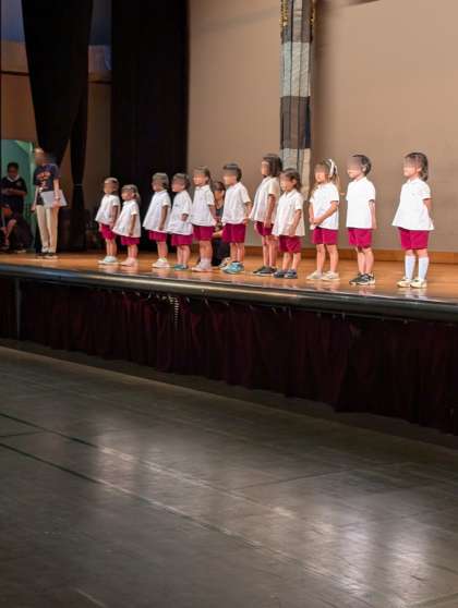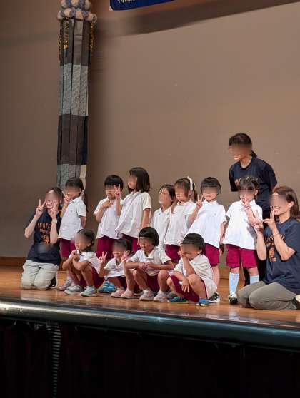 舞台では園歌やたなばたさま、ぼくのミックスジュースなどを歌いました。少し緊張もしましたが、舞台の上でみんな頑張っていました。最後にみんなで記念写真!いい笑顔でした。