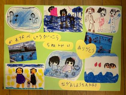 川辺小学校でのプールがとても楽しかったので、今日はみんなでお礼の手紙をかきました。「一緒に遊んで楽しかった」「手をつないでぐるぐるまわるの楽しかった」など色々な楽しかったことを思い出してかいていました。うれしい交流になりました!