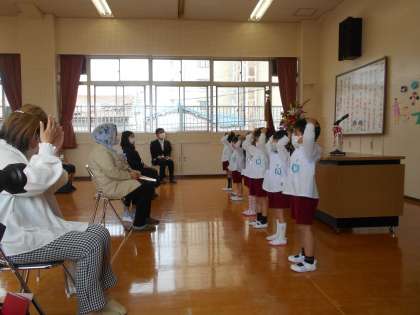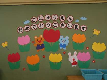 入園式では、そら組の子どもたちの歌を聞いてもらったり、みんなで「むすんでひらいて」を歌ったりしました!