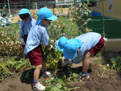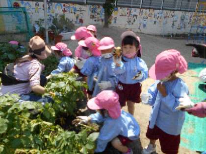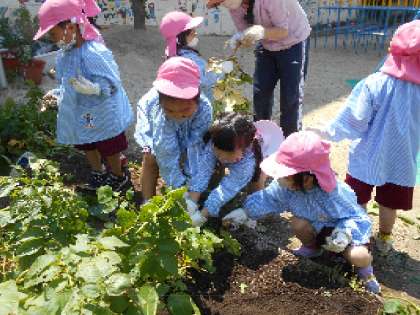 幼稚園の畑にできたじゃがいもを収穫しました。