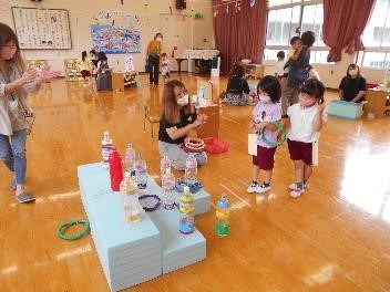 お祭りが始まると、自分で行きたいお店を選んで周り、お気に入りのお店に何度も遊びに行ったり、保護者の方の手作りのスタンプカードを持ってうれしそうに参加したりする姿が見られました。