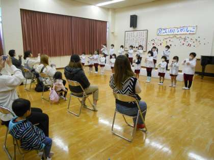 現在もコロナ禍のため、大阪市立幼稚園の5歳児が集まって中央公会堂で行う「うたごえ ひびけなにわっこ」の開催を見送ることになり、今年度は52園が各園で音楽会を開催することになりました。長吉幼稚園では、「うたごえ ひびけながよしっこ」として保護者の方に子どもたちの歌を聞いていただきました。子どもたちは、「聞いてもらえたのが嬉しかった」や「おうちの人たちのお顔が笑ってた」などと、聞いていただけたことを嬉しく思ったり、友達と一緒に歌う楽しさや心地よさを感じたりしていました。