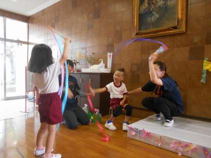 大阪市立幼稚園は「豊かな人間性を培い、力強く生きる力を育む」という総合主題の下、4つの研究ブロックに分かれて研究を行っています。長吉幼稚園は、第4ブロック研究部に属しており、「主体的に活動する中で、人と関わることを楽しむ幼児を育てる」という研究主題で保育実践を行っています。今年度、研究保育を長吉幼稚園が行うことになりました。