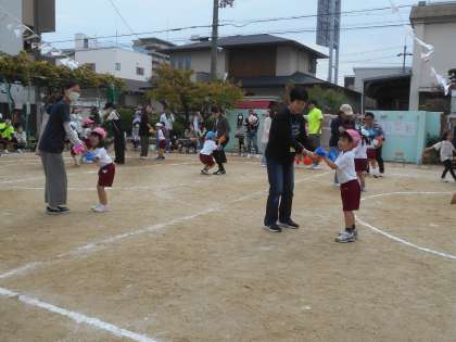 4歳児は、かけっこをしたり、子どもたちが大好きな手作りの電車に乗ってでかけたり、5歳児は、友達と力を合わせて綱引きやリレーをしたり、運動遊具に挑戦したりして、教師や友達と一緒に体を動かすことを楽しんでいました。運動会の最後には、保護者の方と一緒にふれあいダンスをして、頑張った子どもたちをたくさん認めていただきました。