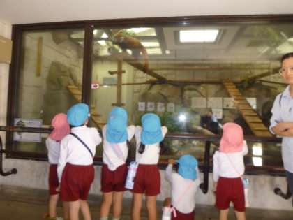 動物園では、大きな口を開けたカバや、ザブンザブンと飛び込むシロクマなどたくさんの動物を見ることができ大興奮の子どもたち。「フラミンゴさん片足で立ってるね」「レッサーパンダのしっぽふさふさやね」などと動物の特徴にも関心をもち、感じたこと発見したことを知らせてくれました。たくさんの動物さんを見ることができて嬉しかったね♪