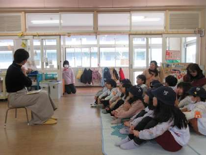 保護者の方の絵本の読み聞かせをしていただきました。子どもたちは、保護者の方に絵本を読んでもらうことを楽しみに思っていました。読み聞かせが始まると、子どもたちは保護者の方の読み聞かせをじっくり聞き、絵本のお話を楽しんだり、「どうなるの?」と絵本の続きを聞いたりしていました。