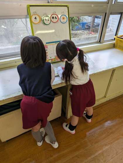 今日もそら組さんがもも組のお手伝いをしてくれていました。もも組さん同士でお手伝いする姿も見られました♪用意が終わったら今日も沢山遊ぼうね!