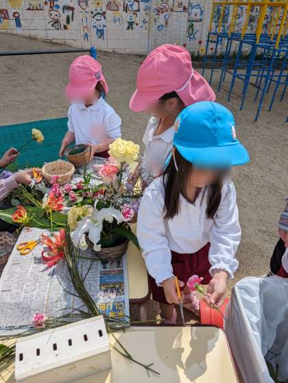 式場花を使って生け花遊びをしました。みんな好きな花を選んで思い思いに生けていきました。芸術的!な生け花が沢山できました!